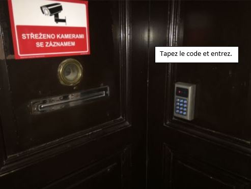 Sur le côté droit de la porte marron qui vous conduit à l'appartement, vous verrez un clavier éléctronique où saisir le code.