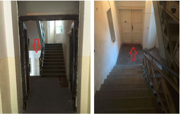 Спуститесь по ступенькам, чтобы попасть на лестничную клетку.