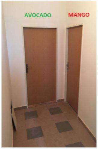 Sur votre gauche, vous trouverez 2 boîtes aux lettres, ouvrez s'il-vous-plaît celle portant le nom "Avocado & Mango". A l'intérieur vous trouverez deux boîte à clés, ouvrez celle portant le nom "Avocado" avec le code que nous vous avons envoyé dans un email séparément et utilisez la clés se trouvant à l'intérieur pour accéder à votre chambre.