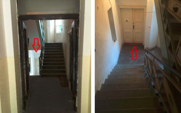 Спуститесь по ступенькам, чтобы попасть на лестничную клетку.