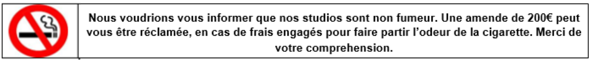 - Nous vous demandons de bien vouloir rester discret dans les pièces communes et dans les chambre en particulier de 22h à 10h afin de respecter le sommeil et le confort des autres hôtes. Dans le cas contraire, en cas de plaintes, nous mettrons fin à votre séjour dans nos studios.