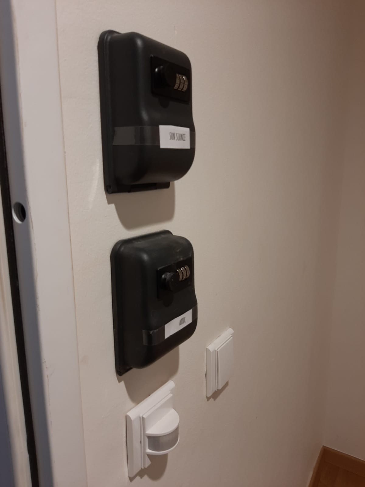 When you enter, on your right side there are to boxes, open keybox SUN with last code we have sent and enter your room that is right in front of you.